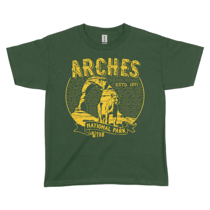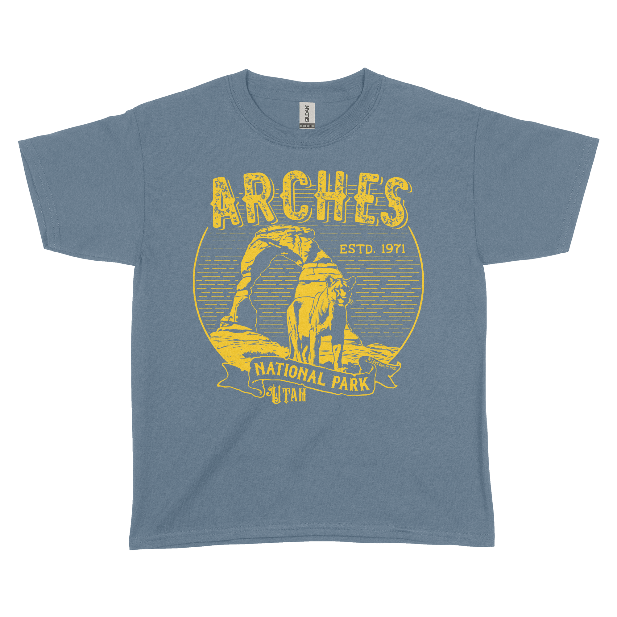 Show your love for Utah's Arches National Park with our vintage inspired youth tee! Made from 100% cotton, this unisex shirt is perfect for any adventure. Designed and printed in the USA so you can look good and feel good about supporting US businesses.