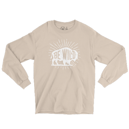 Pay tribute to the king of the prairie with our Be Wild Bison long sleeve tee. Bold “BE WILD” lettering runs through a classic bison silhouette with hand-drawn distressing and sunburst rays—an ode to wide-open grasslands and big-sky freedom. Perfect for park days, road trips, and anyone who carries a little frontier spirit wherever they roam.
