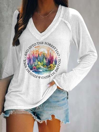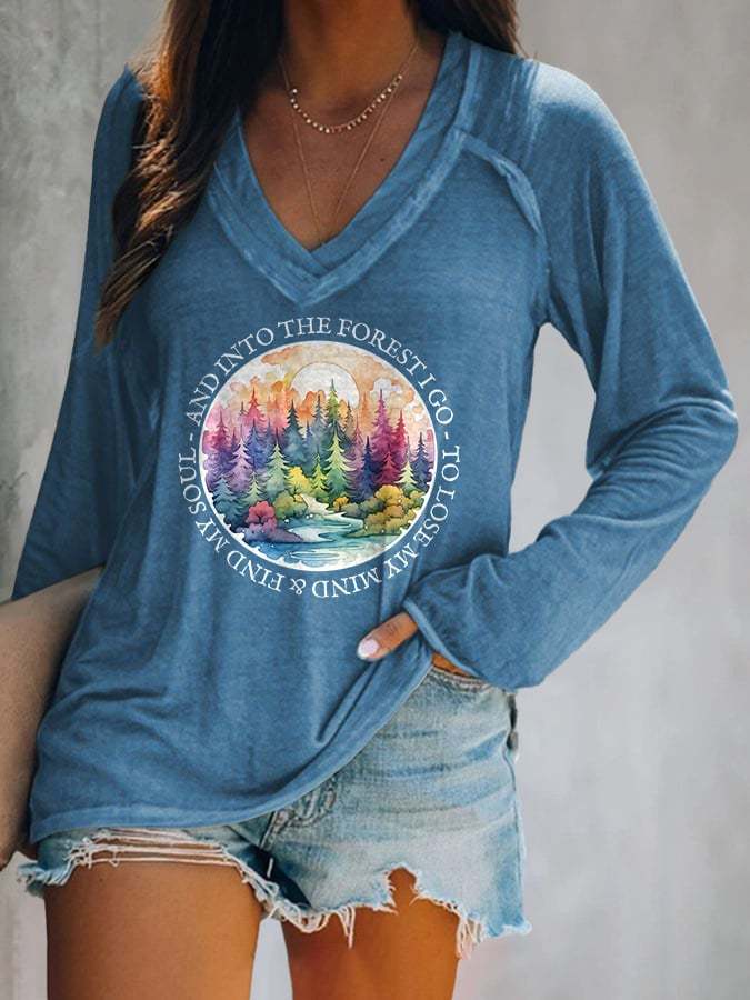 V-neck Retro Hiking Outdoors Camping And Into The Forest I Go To Lose My Mind And Find My Soul Print T-Shirt