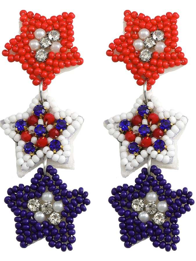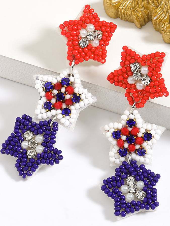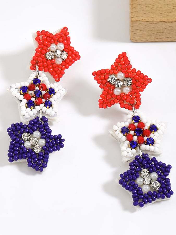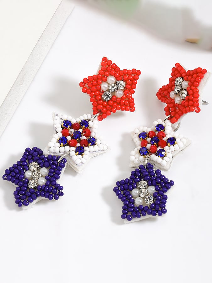 🔥Last Day 49% Off🔥Independence Day Creative National Flag Color Five-Pointed Star Three-Medium Beads And Diamond Earrings