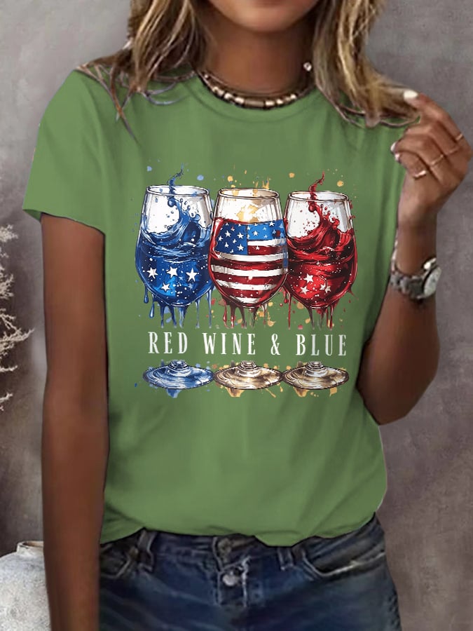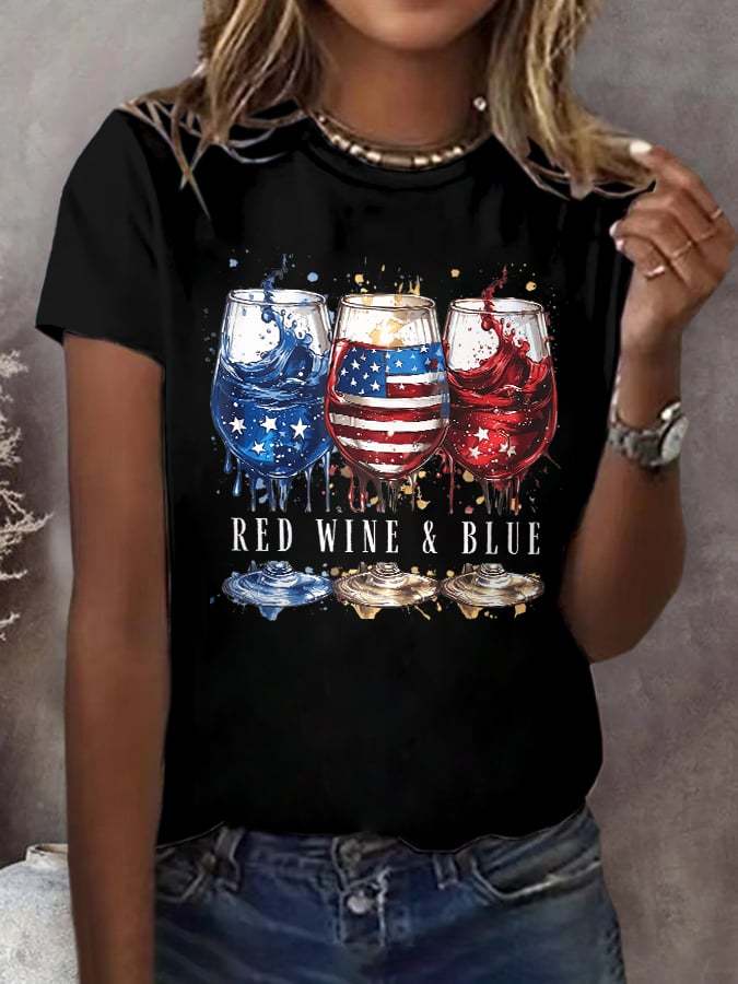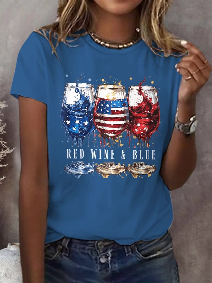 🔥Last Day 49% Off🔥Retro Independence Day Red Wine And Blue Print T-Shirt